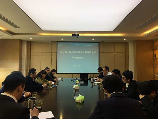 揚州揚大聯環藥業基因工程有限公司(以下簡稱“公司”)專家聘任儀式于4月23日在綠地峰創國際大廈A座9樓會議室順利召開,股份公司總經理、公司董事長吳文格、集團公司黨委副書記、副總經理于世慶、公司總......